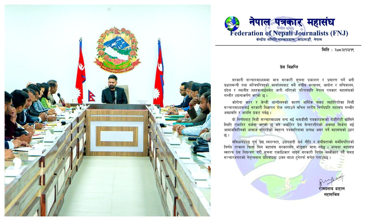 рдирд┐рдЬреА рд╕рдЮреНрдЪрд╛рд░рдорд╛рдзреНрдпрдорд▓рд╛рдИ рд╕рд░рдХрд╛рд░реА рд╡рд┐рдЬреНрдЮрд╛рдкрдирдорд╛ рд░реЛрдХ рд▓рдЧрд╛рдЙрдиреЗ рдирд┐рд░реНрдгрдпрдорд╛ рдорд╣рд╛рд╕рдЩреНрдШрдХреЛ рдЖрдкрддреНрддрд┐