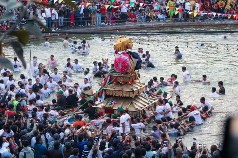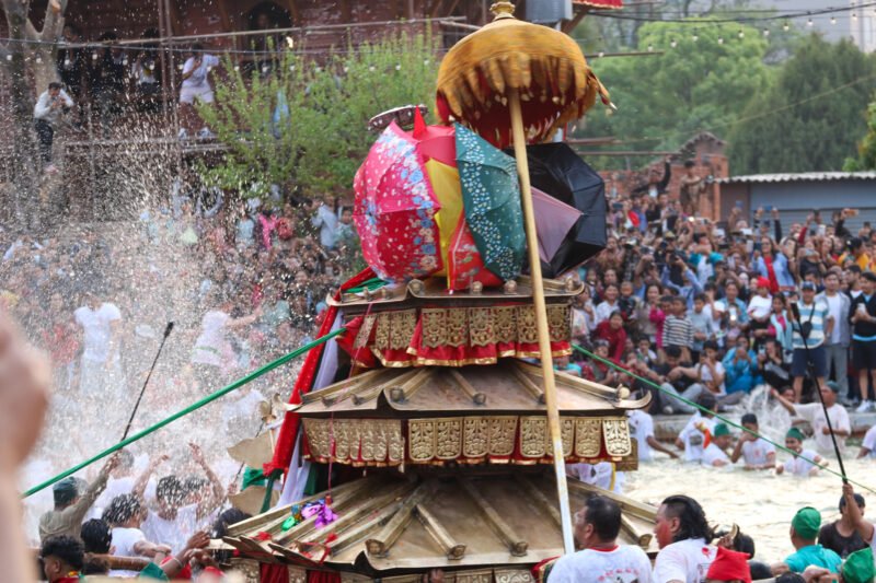 काठमाडौँ । काठमाडौँको हाँडीगाउँस्थित गहना पोखरीमा गहना खोज्ने जात्रा सम्पन्न भएको छ। यस जात्रामा खटलाई पोखरीभित्र तीनपटक परिक्रमा गराएर देवीको गहना खोज्ने गरिन्छ।