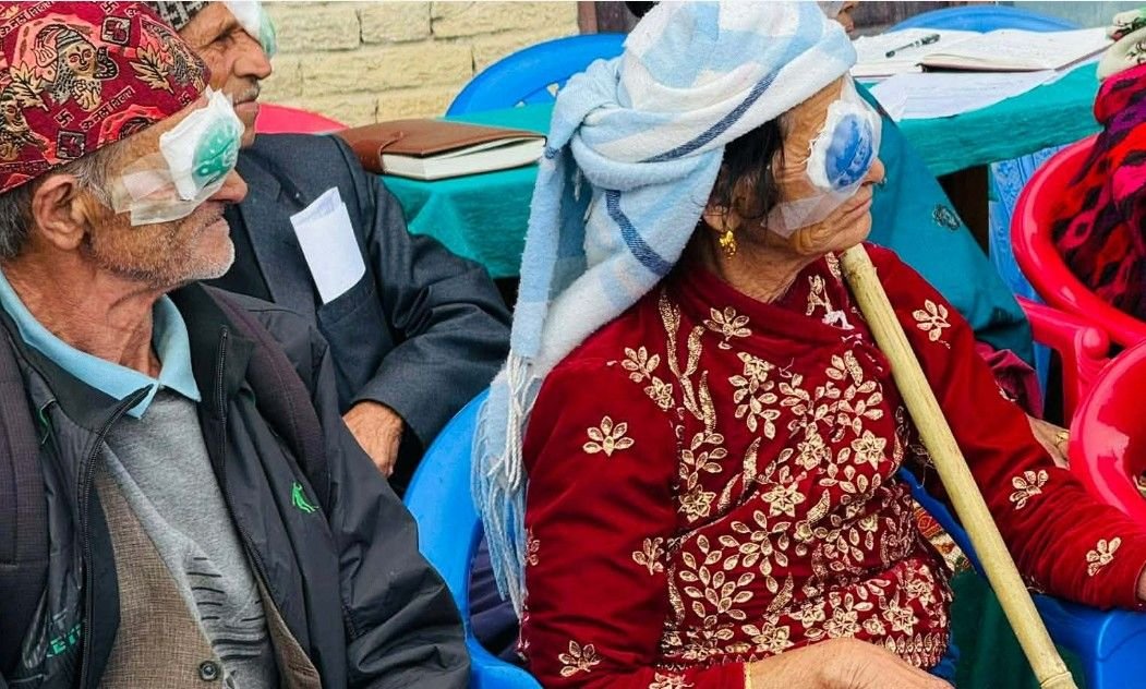 परिवारको साथ लिएर आँखा शिविरमा आएका वृद्धवृद्धा उपचारपछि आफैँ घर फर्किए