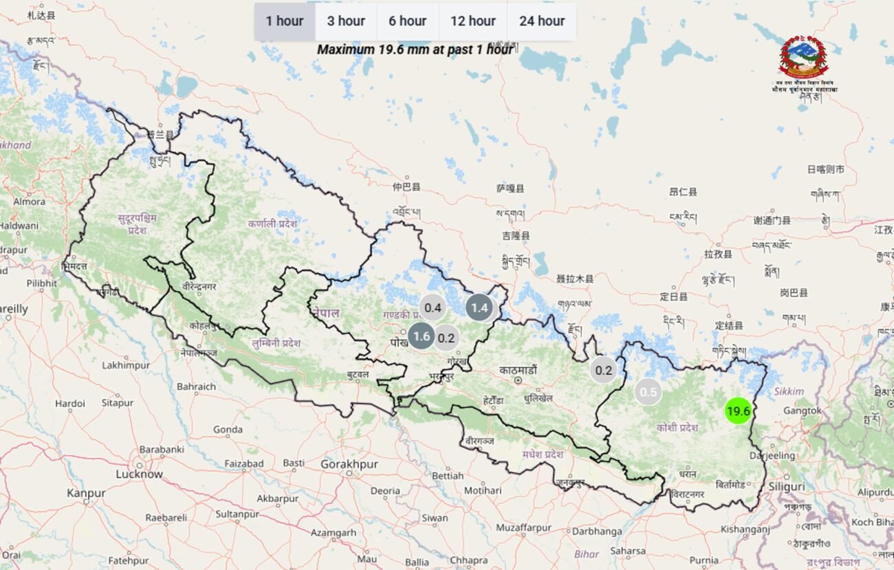 मौसम नक्साको पहिलो चित्रमा देखिने पहेँलो थोप्ला जस्तो रङले हाल मेघगर्जन/चट्याङ्ग भइरहेको स्थान संकेत गरेको जनाइएको छ । यसले मौसमको जोखिमयुक्त क्षेत्र पहिचान गर्न सहज बनाउने भएकाले नागरिकलाई अद्यावधिक सूचना पछ्याउँदै आवश्यक सतर्कता अपनाउन अनुरोध गरिएको छ ।