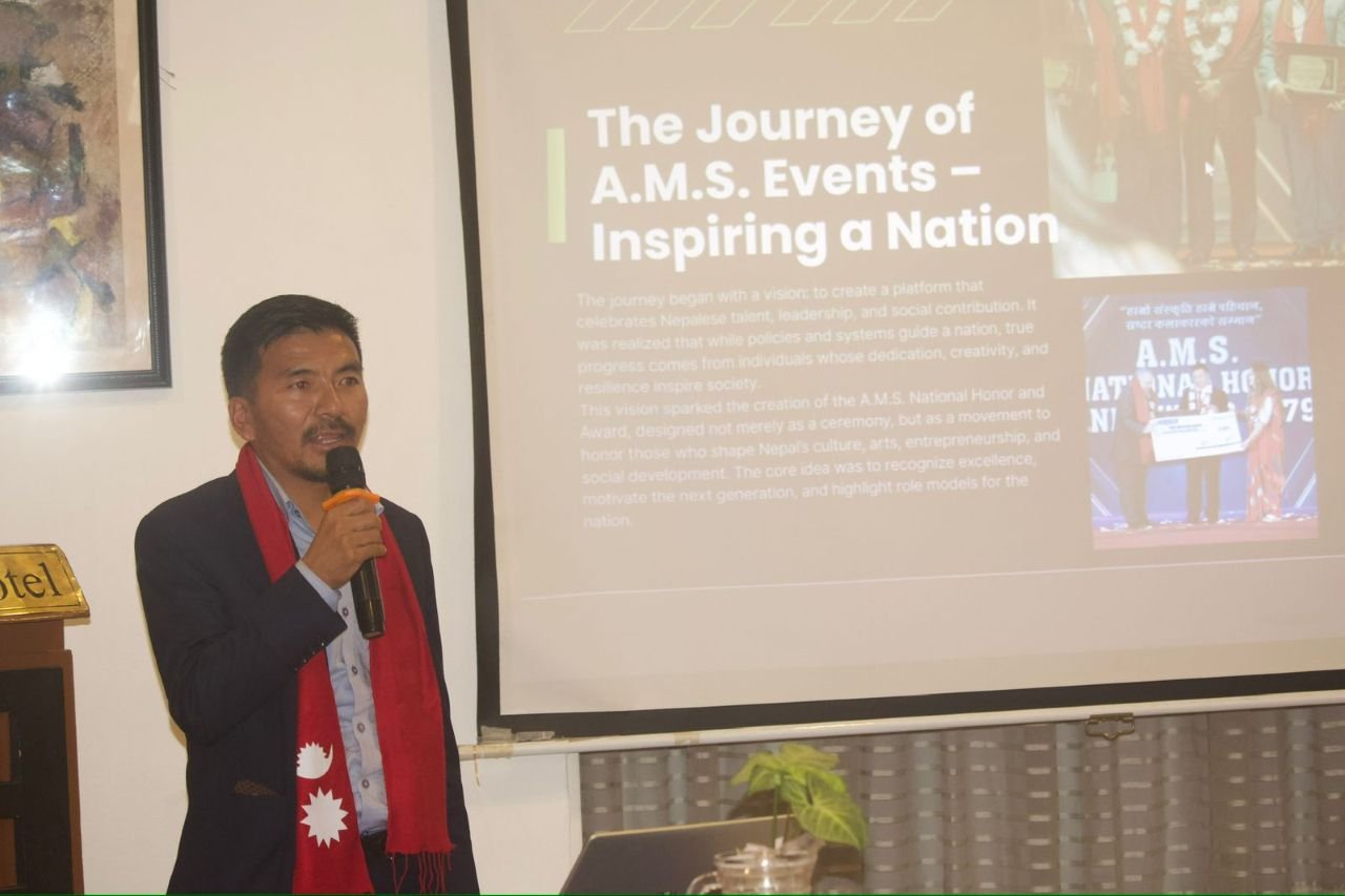 एएमएस ग्लोबल हिमालय फाउन्डेसनले आगामी मे २९ मा काठमाडौँमा आयोजना गर्न लागेको एभरेष्ट टुरिज्म एवार्ड र वल्ड पिस समिटका बारेमा उद्यमी, व्यवसायी जानकारी दिन यहाँ आयोजित कार्यक्रममा उहाँले पर्यटन क्षेत्रमा लगानी बढाउन पनि यस किसिमका कार्यक्रमहरुको आयोजना गर्नु आवश्यक रहेको बताउनुभयो ।