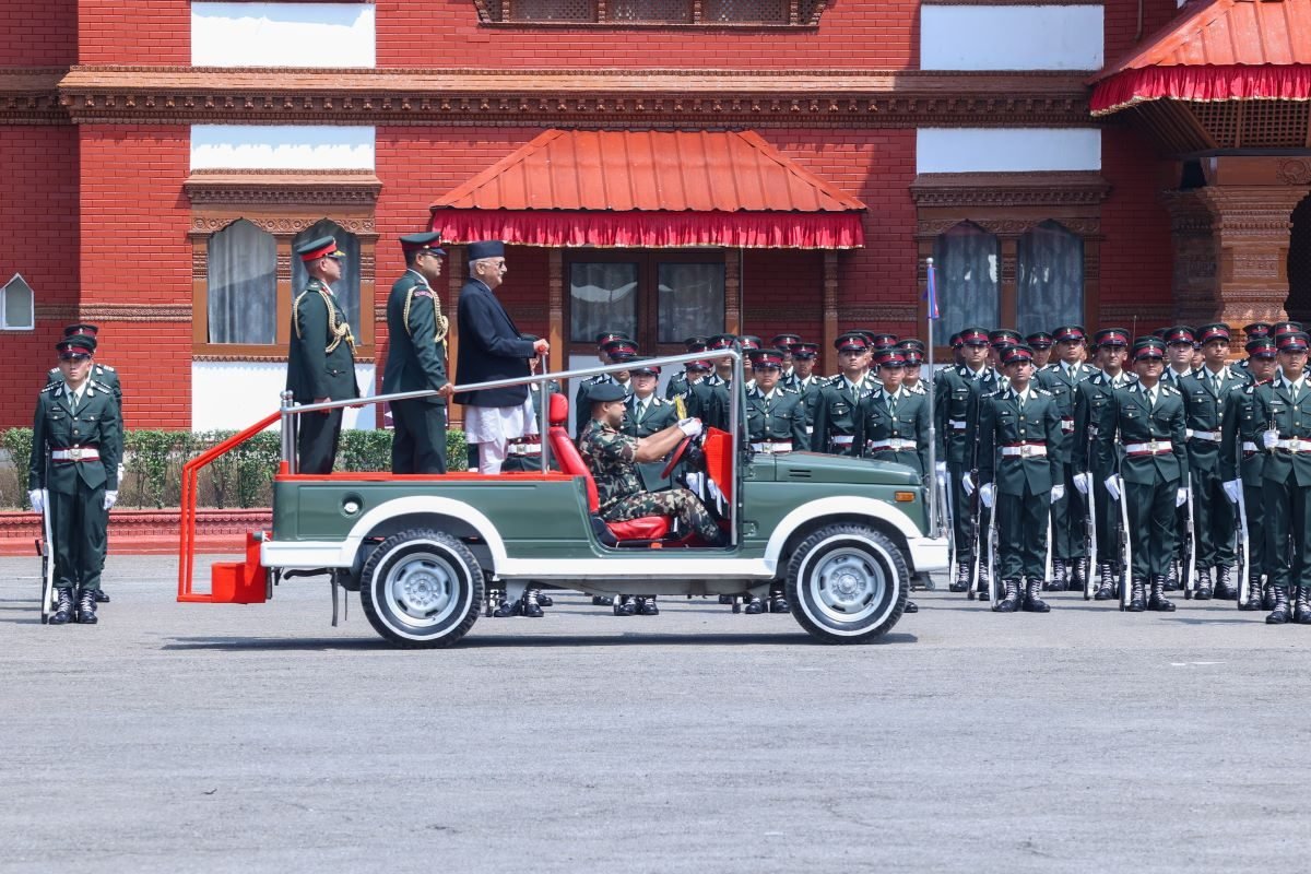 नेपाली सेनाको तालिम कवाजमा प्रधानमन्त्री