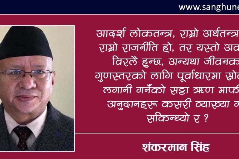 नेपालको चुनावी अभ्यास र राजनीतिक संस्कृति वा भाष्य यस्तो निर्माण गरियो कि सांसदले सम्पूर्ण विकास, रोजगारी तथा समृद्धि एवम् उन्नत्ति पूरा गरिदिने हो । जुन सोच पूरै गलत हो । मूलतः कानून निर्माण गर्ने प्रतिनिधिसभाका सांसदलाई विकास निर्माण गर्ने जादुको मान्छे सोचियो, सोच्ने बनाइयो । नेपालको संघीय लोकतान्त्रिक गणतन्त्रको राजनीतिक प्रणाली र संसदीय प्रजातन्त्रको कमजोरी तथा खराबी यही चुनावी गलत अभ्यासबाट सुरु गरिँदै आयो ।