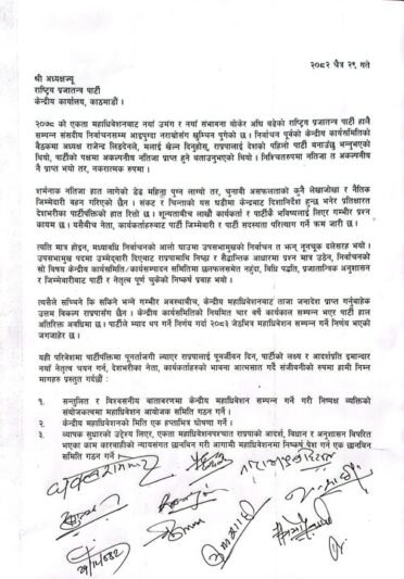 १. तत्काल केन्द्रीय महाधिवेशन सम्पन्न गर्ने वातावरण बनाइयोस्