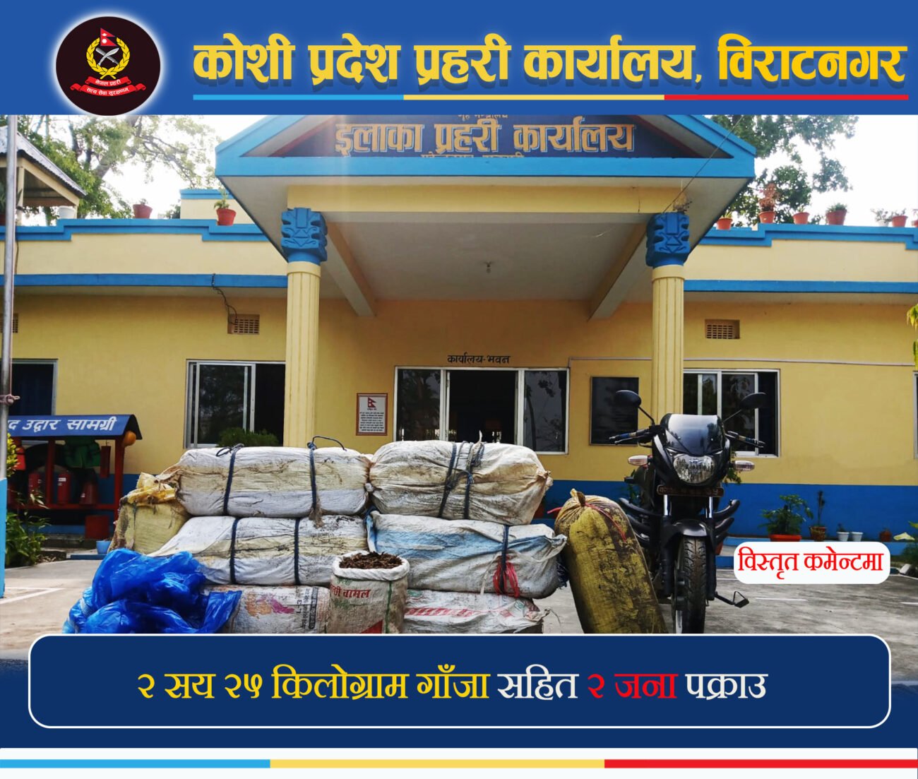 वैशाख १ गते राती ९ बजे विषेश सुचनाको आधारमा इलाका प्रहरी कार्यालय महेन्द्रनगरबाट खटिएको प्रहरी टोलीले बराहक्षेत्र नगरपालिका-६ स्थित सप्तकोशी नदी किनारमा बगाएर ढुवानी गर्ने बाँसको झाकमुनी प्लास्टिको ९ वटा बोरामा बाँधी लुकाई छिपाई राखेको अवस्थामा २ सय २५ किलोग्राम गाँजा सहित ओसार पसारमा संलग्नलाई पक्राउ गरिएकाे हाे ।