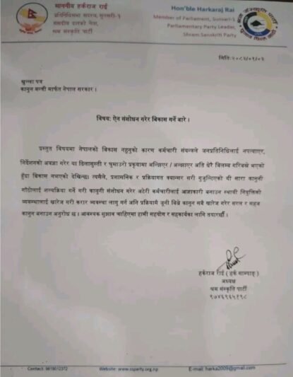 काठमाडाैं । श्रम संस्कृति पार्टीका अध्यक्ष तथा प्रतिनिधिसभा सदस्य हर्कराज राई (हर्क साम्पाङ) ले सरकारलाई सम्बोधन गर्दै दिएको खुला पत्रले प्रशासनिक संरचना नै पुनःपरिभाषित गर्ने बहस जन्माएको छ। उनले कर्मचारी संयन्त्रलाई स्थायी संरचनाबाट हटाएर करारमा लैजानुपर्ने र कानुनी–प्रशासनिक जटिलता हटाई विकासलाई तीव्र बनाउनु पर्ने प्रस्ताव अघि सारेका छन्।