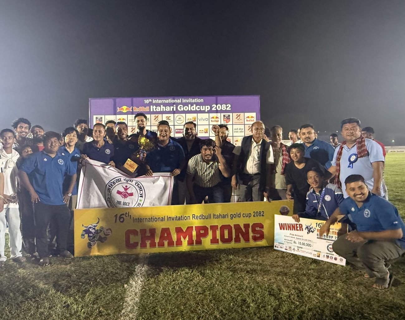 धरान (सुनसरी), ८ वैशाखः सोह्रौँ संस्करणको अन्तर्राष्ट्रिय आमन्त्रण रेडबुल इटहरी गोल्डकप फुटबल प्रतियोगिताको उपाधि युवा समाज गछिया मोरङले जितेको छ । सोमबार इटहरीस्थित रङ्गशालामा सम्पन्न फाइनल खेलमा प्लानिङ ब्वाइज युनाइटेड काठमाडौँलाई १-० गोलअन्तरले पराजित गर्दै युवा समाज गछियाले उपाधि हात पारेको हो ।