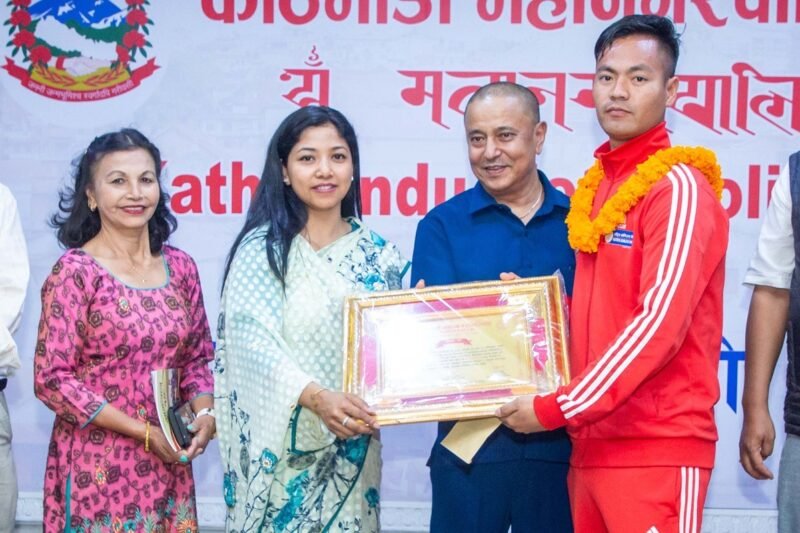 काठमाडौँ । काठमाडौँ महानगरपालिकाले अन्तर्राष्ट्रिय खेल प्रतियोगिताका पदक विजेता २ जना खेलाडीलाई नगदसहित सम्मान गरेको छ ।