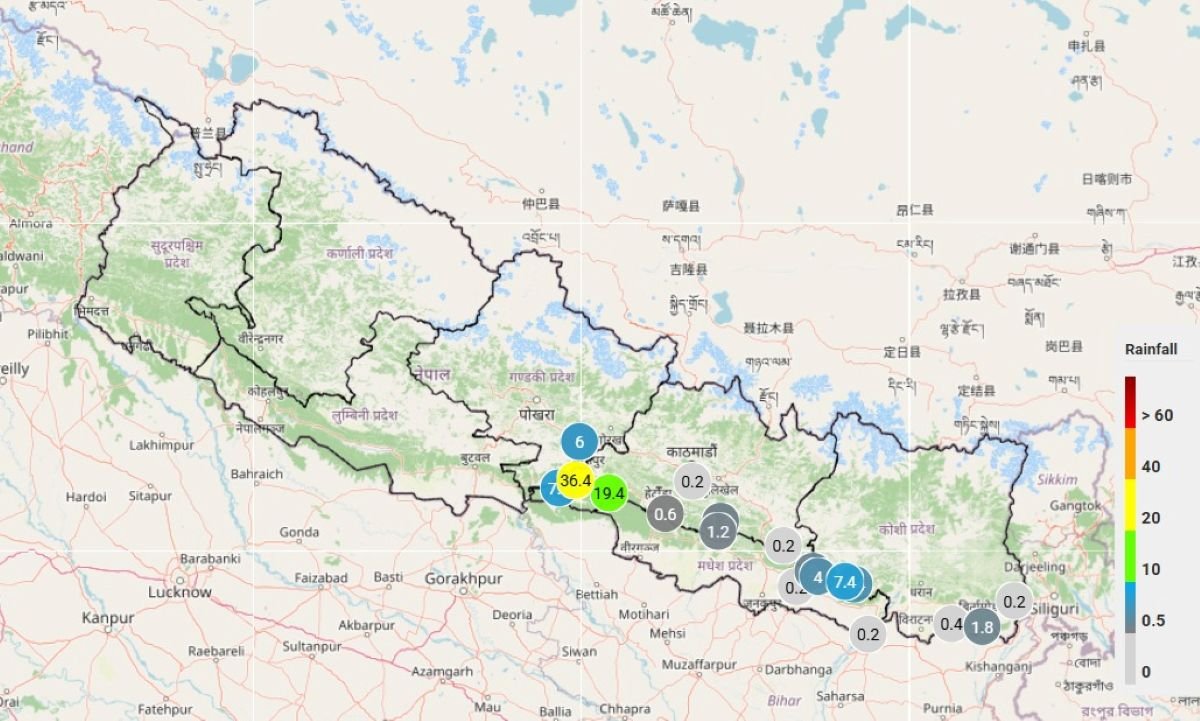 काठमाडौं, २०८३ वैशाख १३ (बिहान) । हाल देशका विभिन्न स्थानमा वर्षा जारी रहेको छ। कोशी र बागमती प्रदेशका केही स्थानहरूमा तथा मधेश र गण्डकी प्रदेशका एक–दुई स्थानमा मेघगर्जन तथा चट्याङ्गसहित मध्यम वर्षा भइरहेको छ।