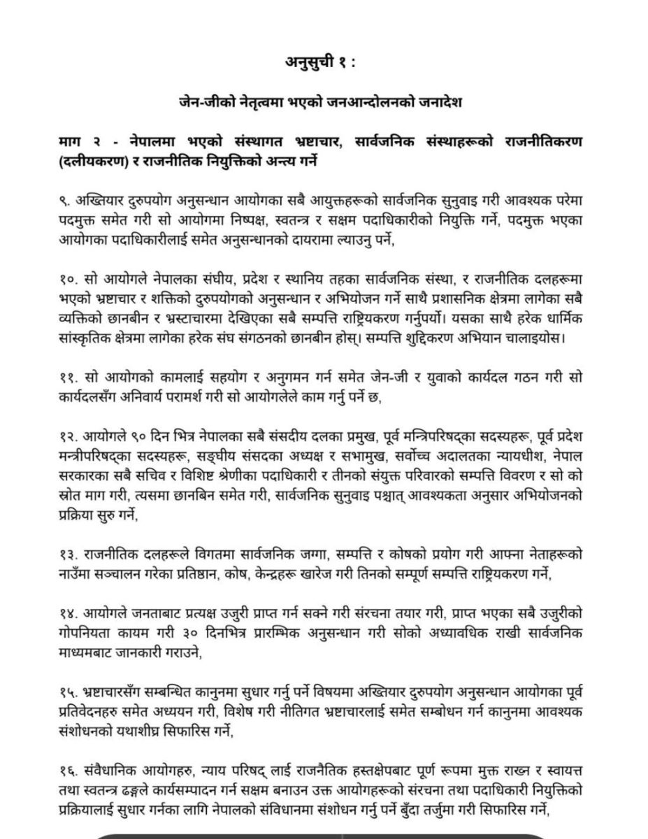 जेन–जेड मुभमेन्ट एलायन्सले भ्रष्टाचार नियन्त्रणका लागि अख्तियार पुनर्गठनका तीन प्रमुख आधार प्रस्ताव गरेको छ—